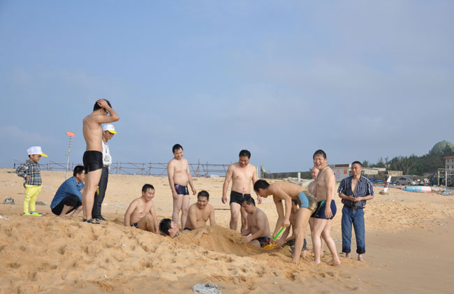 虽然到了深秋,海风习习,海水也有一丝丝凉意,参与活动的国研机械总部50多名员工纷纷下海畅游,好不惬意。不少参与活动的员工家属也按捺不住活动开来。大家边游泳,边踏浪,也有的在沙滩上捡贝壳,孩子们拿着铲子挖沙,一个个玩得不亦乐乎。